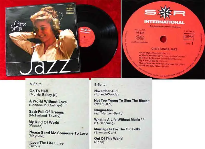 LP Gitte Sings Jazz (SR International HiFi 92 627 Stereo) D 1970