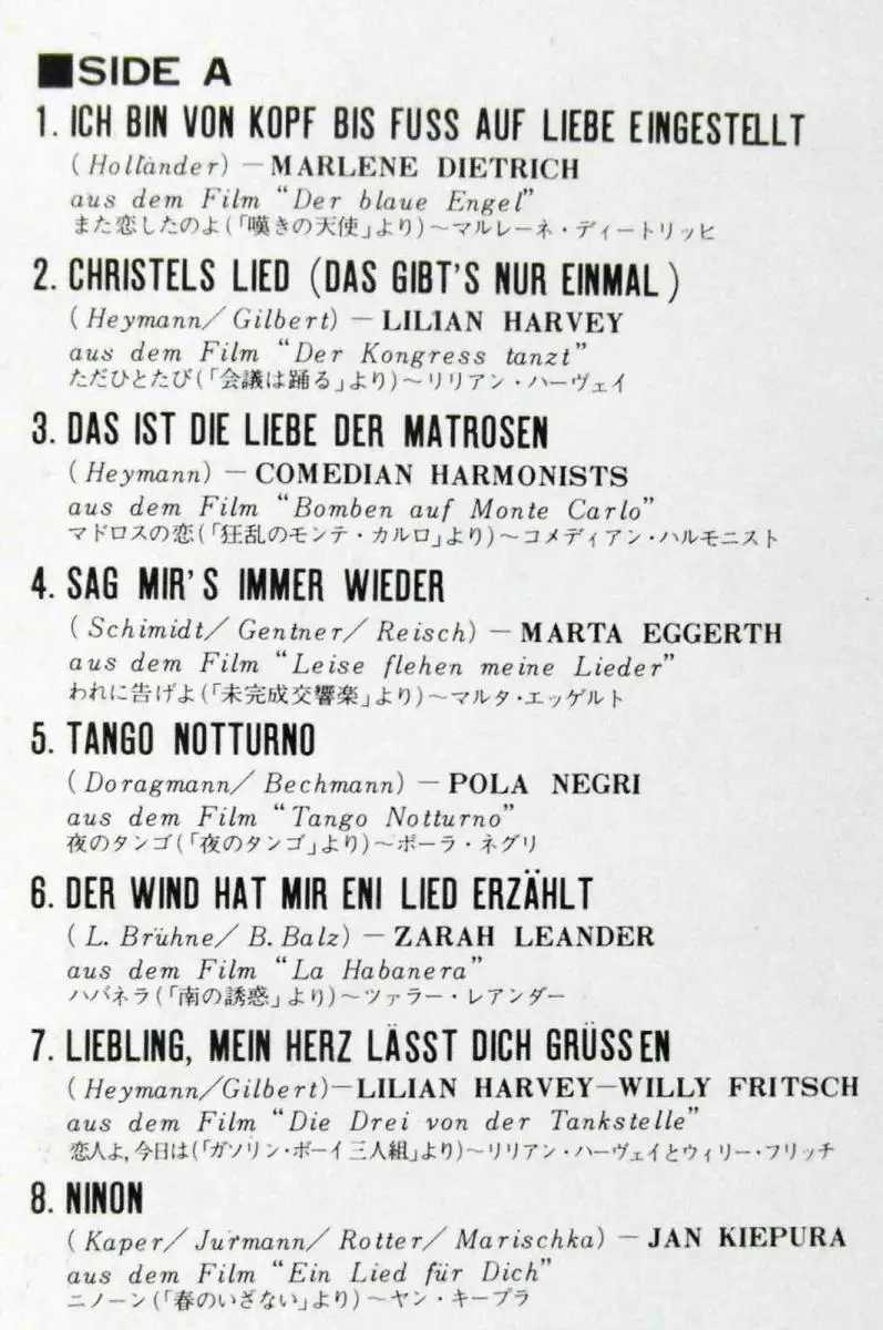 Soundtrack Album, Metronome Records, Japan Pressung, feat Marlene Dietrich, Zarah Leander, Lilian Harvey, Comedian Harmonists, Pola Negri, Martha Eggerth, Willy Fritsch, Jan Kiepura, Deanna Durbin, Jeanette MacDonald & Nelson Eddy, Judy Garland, Fred Astaire, Dorothy Lamour, Eleanor Powell, Allan Jones, Bing Crosby
