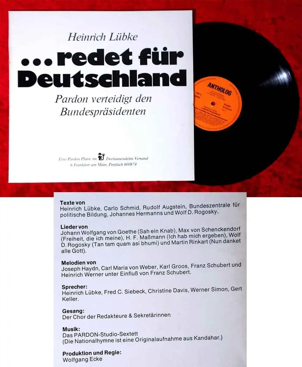 seltenes Originalalbum, dt. Pressung, Pardon Records, Texte von Heinrich Lübke, Rudolf Augstein, Carlo Schmid