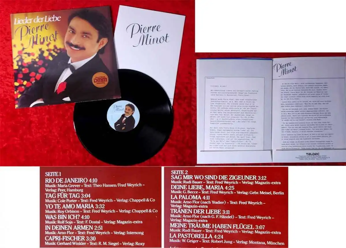 LP Pierre Minot: Lieder der Liebe (Teldec 625364 AS) D 1982 mit Pressemappe