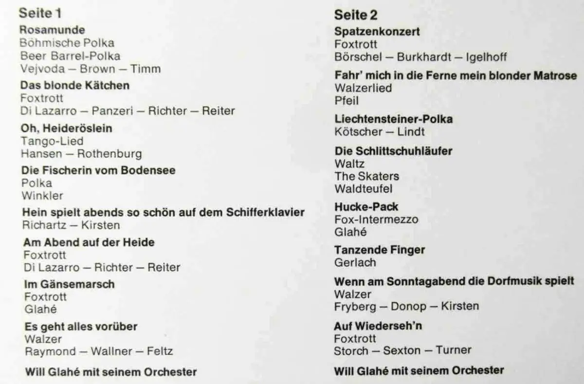 LP Will Glahé spielt seine Welterfolge (Hör Zu SHZT 552) D 1965