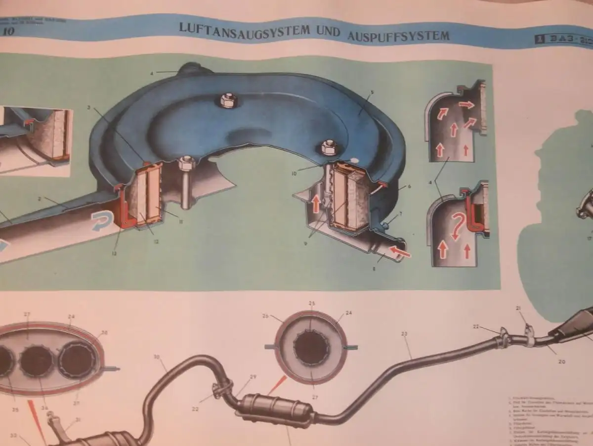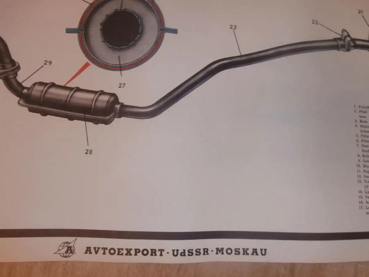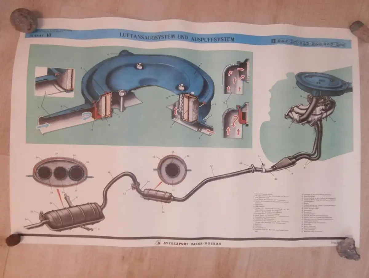 Lada BAS 2101 - großes altes Plakat - Aufbau , Auspuff- und Ansaugsystem , UDSSR , DDR , Oldtimer , Poster , Russland !!! Extrem RAR !!! ca. 870x580 mmOL