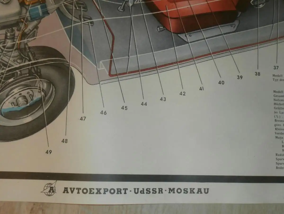 Lada BAS 2101 - großes altes Plakat - Aufbau , Schautafel , UDSSR , DDR , Oldtimer , Poster , Russland !!! RAR !!