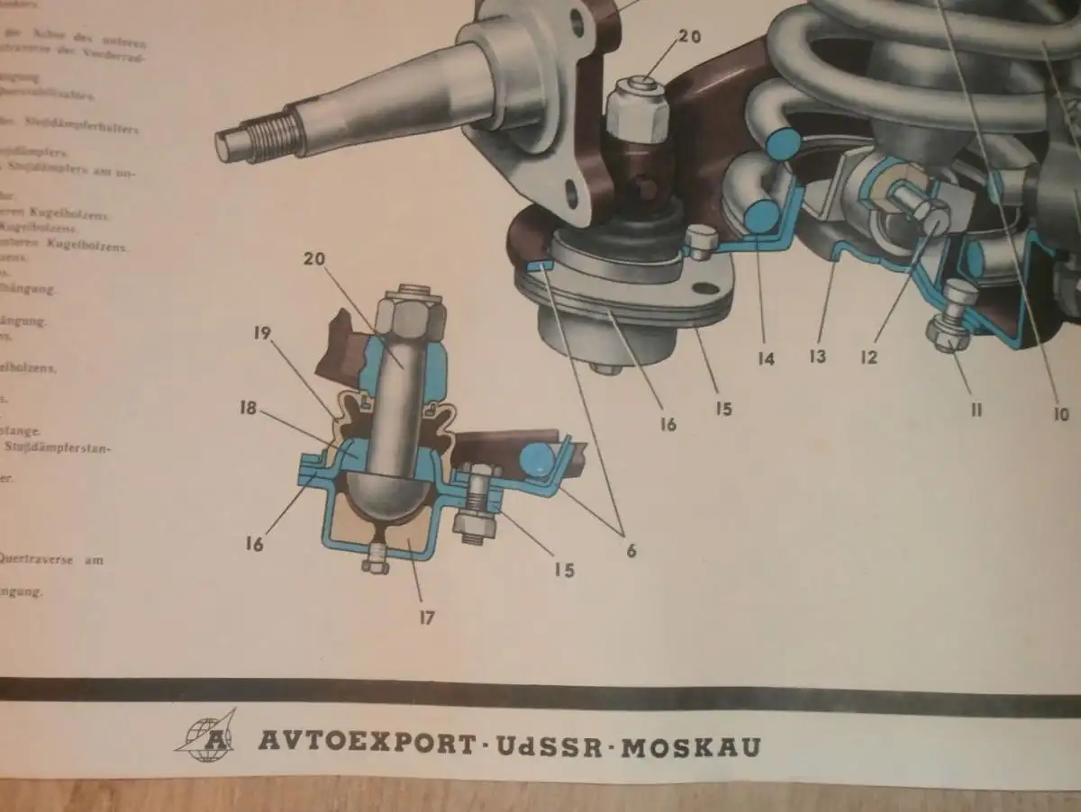 Lada BAS 2101 - großes altes Plakat - Radaufhängung , Schautafel , UDSSR , DDR , Oldtimer , Poster , Russland !!! RAR !!