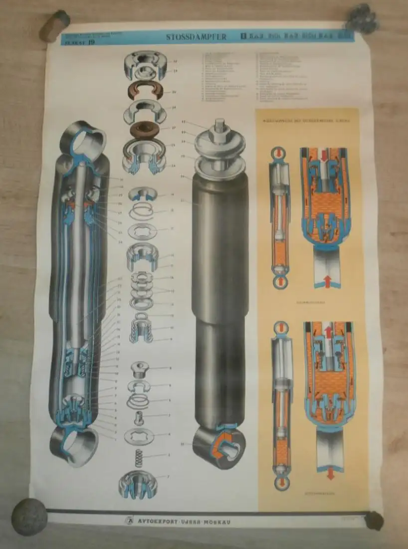 Lada BAS 2101 - großes altes Plakat - Stossdämpfer , Schautafel , UDSSR , DDR , Oldtimer , Poster , Russland !!! RAR !!
