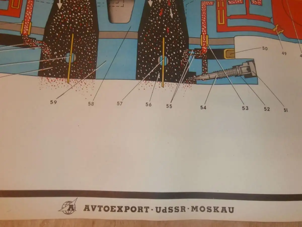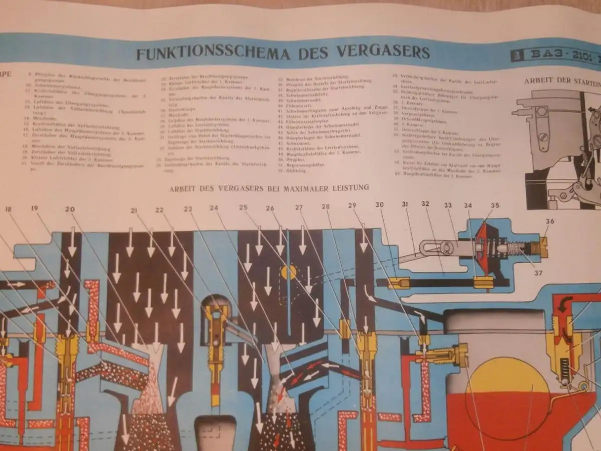 Lada BAS 2101 - großes altes Plakat - Aufbau , Vergaser Funktion , UDSSR , DDR , Oldtimer , Poster , Russland !!! Extrem RAR !!! ca. 870x580 mmOL