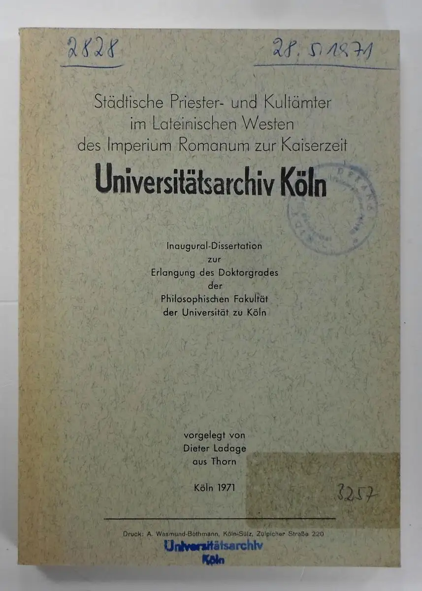 Ladage, Dieter: Städtische Priester- und Kultämter im Lateinischen Westen des Imperium Romanum zur Kaiserzeit. (Dissertation).
