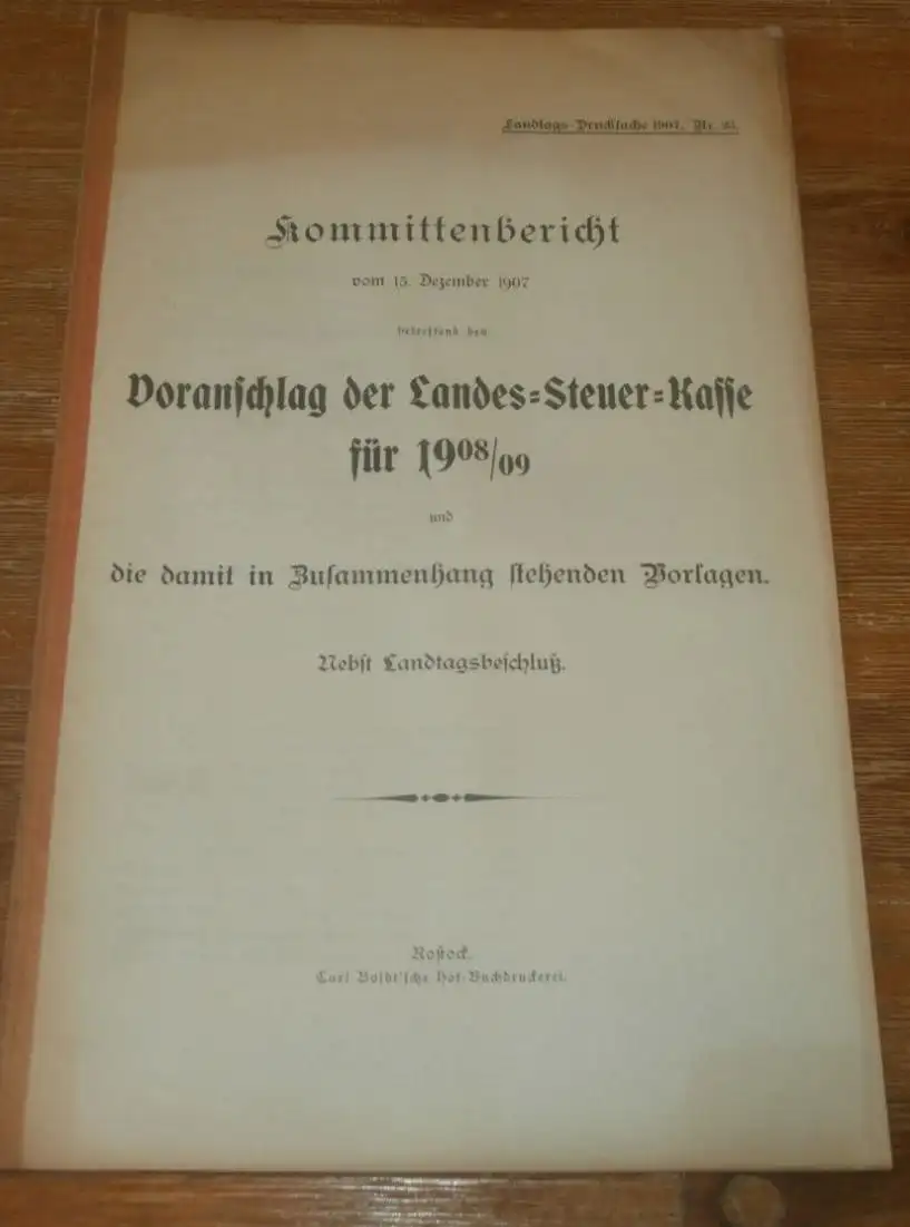 Landes-Steuer-Kasse in Mecklenburg , 1907 , alte Akte , Landrat , Schulden , Polizei , Sternberg , 23 Seiten !!!
