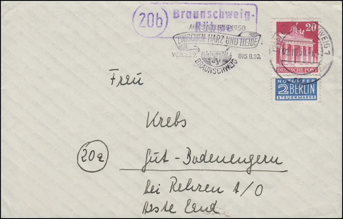 Landpost Braunschweig-Rühme sur le recto de la lettre BRUNSCHWEIG 1 - 2.10.50