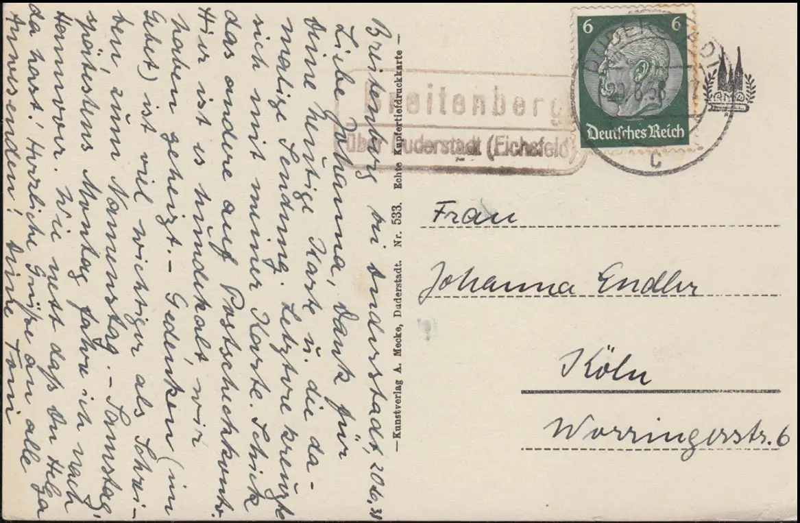 Landpost Breitenberg sur DUDERSTADT 20.6.1938 sur AK Duderstadt Oberer Markt