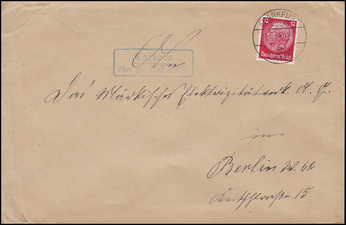 Le courrier de Landpost LOSSOV sur FRANKFURT (ou) 11.5.1934 sur lettre à BERLIN