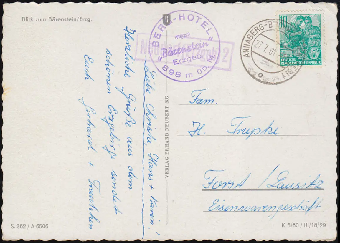 Landpost Neudorf (Erzgebirge) 2 sur AK Bärenstein, ANNABERG-LÜGHOLZ 27.7.1961