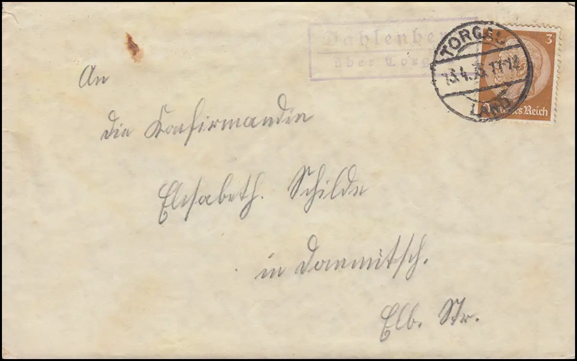 Le temple de Landpost Dahlenberg sur TORGAU 13.4.1935 sur impression