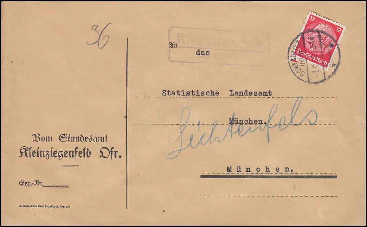 der Stagesamt Kleinzigenfeld (Oberfrankane9 an die Statistisches Landesamts in München Audit: original Référence d'article: 00000000021099