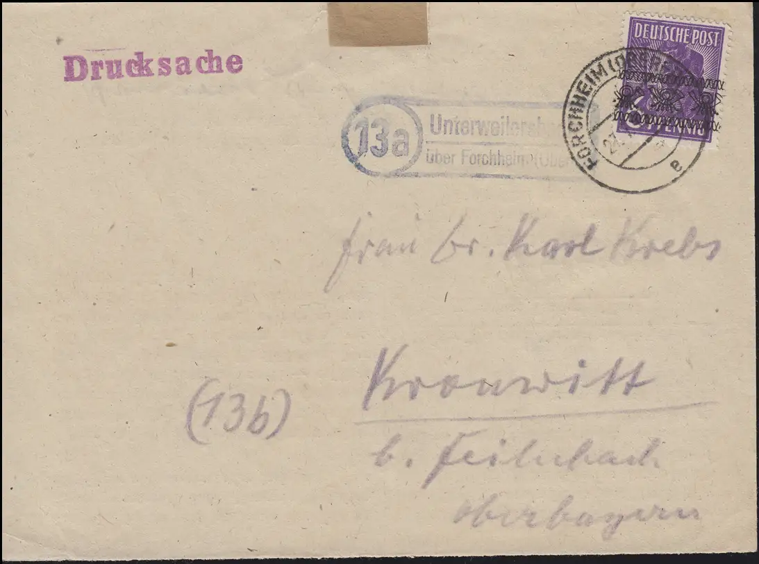 Landpost Unterweilersbach sur FORCHHEIM 27.7.48, avant-poste avec EF 37I