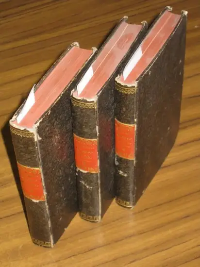 Freie Beschreibung: Kl.-8°. Drei uniforme Pappbände der Zeit mit Dreiseitenrotschnitt und goldgeprägten Rückentiteln auf roten Rückenschilden. Etwas goldgeprägte Rückenverzierung. Das Bezugspapier nur leicht berieben, Ecken, Kanten und Kapitale etwas stärker. Auf den Innendeckeln ein ExLibris und kleiner Vorbesitzernamenszug. 100 / 88 / 88 / 84 (+1) / 93 / 94 / 96 / 95 / 92 / 104 Seiten. Im Innenbereich schwankend braunfleckig (1-3 und 7 stärker), teils sauber (4). Im Teil 2 Seiten 86-88 ein kleinerer Tintenfleck. Fest in der Bindung, nett gebunden. Gutes Exemplar