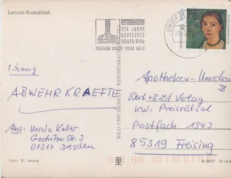 Ich hatte die Rechnung sofort als Vorkasse bezahlt, aber keine Zusendung der Karte erhalten. Trotz Nachfrage keine Rückmeldung bzw. Erklärung. Da es sich zum Glück nur um 1,70 € handelt, ist die Sache für mich erledigt, ärgerlich, aber zu verkraften. Mit den drei anderen Karten, die ich bestellt hatte, hat alles wunderbar geklappt.