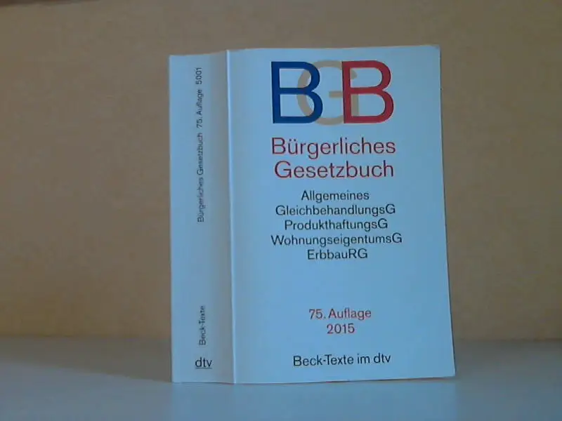 die Seiten und der Einband sind altersbedingt gebräunt, fleckig, aus dem Inhalt: Bürgerliches Gesetzbuch (BGB) in der Fassung der Bekanntmachung vom 2. Januar 2002 - Einfuhrungsgesetz zum Bürgerlichen Gesetzbuche in der Fassung der Bekanntmachung vom 21. September 1994 (Auszug) - Verordnung über Informations- und Nachweispflichten nach bürgerlichem Recht (BGB-Informationspflichten-Verordnung BGB-InfoV) in der Fassung der Bekanntmachung vom 5. August 2002 - Allgemeines Gleichbehandlungsgesetz (AGG) vom 14. August 2006 - Gesetz über die Haftung für fehlerhafte Produkte (Produkthaftungsgesetz - ProdHaftG) vom 15. Dezember 1989 - Gesetz über Unterlassungsklagen bei Veibraucherrechts- und anderen Verstößen (Unterlassnngsklagengesetz - UKlaG) in der Fassung der Bekanntmaachung vom 27. August 2002 -Gesetz über das Wohnungseigentum und das Dauerwohnrecht (Wohnungseigentumsgesetz) vom 15. März 1951 - Beurkundungsgesetz vom 28. August 1969 - Gesetz über die Eingetragene Lebenspartnerschfat (Lebenspart¬ nerschaftsgesetz - LPartG) vom 16. Februar 2001 - Gesetz über das Erbbaurecht (Erbbaurechtsgesetz - ErbuRG) vom 15. Januar 1919 - Verordnung (EG) Nr. 593/2008 des Europäischen Parlaments und des Rates vom 17. Juni 2008 über das auf vertragliche Schuldverhältnisse anzuwendende Recht (Rom I) - Verordnung (EG) Nr. 864/2007 des Europäischen Parlaments und des Rates vom 11. Juli 2007 über das auf außervertragliche Schuldverhältnisse anzuwendende Recht („Rom II") - Verordnung (EU) Nr. 1259/2010 des Rates vom 20. Dezem¬ ber 2010 zur Durchfuhrung einer Verstärkten Zusammenarbeit im Bereich des auf me Ehescheidung und Trennung ohne Auflösung des Ehebandes anzuwendenden Rechts („Rom III") - Verordnung (EG) Nr. 4/2009 des Rates vom 18. Dezember 2008 über die Zuständigkeit, das anwendbare Recht, Ankennung und Vollstreckung von Entscheidungen und die Zusammenarbeit in Unterhaltssachen - Verordnung (EU) Nr, 650/2012 des Europäischen Parlaments und des Rates vom 4. Juli 2012 über die Zuständigkeit, das anzuwendende Recht, die Anerkennung und Vollstreckung von Entscheidungen und die Annahme und Vollstreckung öffenticher Urkunden in Erbsachen sowie zur Einfuhrung eines Europäisehen Nachlasszeugnisses Beschreibung vom Antiquariat Ardelt 1e4a ISBN-Nummer: 3423050012 Antiquariat Ardelt