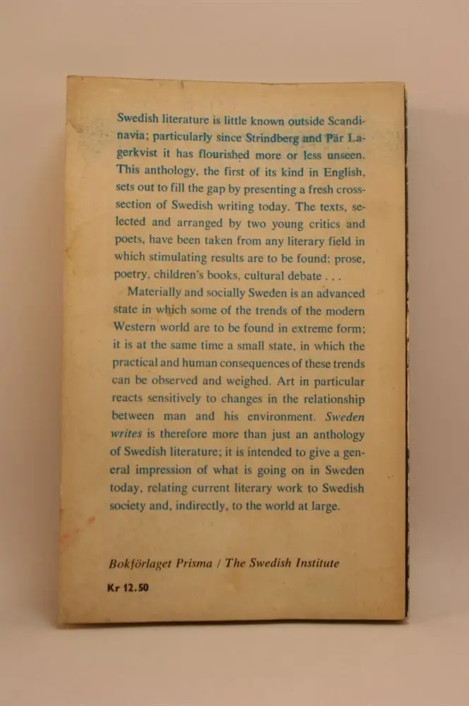 Lars Bäckström, Göran Palm: Sweden writes. Contemporary Swedish Poetry and Prose, Views on Art, Literature and Society.
