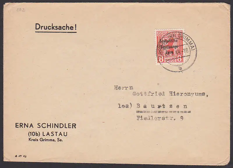 Lastau (Kr. Grimma) Ds 2. Gewichtsstufe, 8 Pfg-B„r mit SBZ-Aufdruck (202)