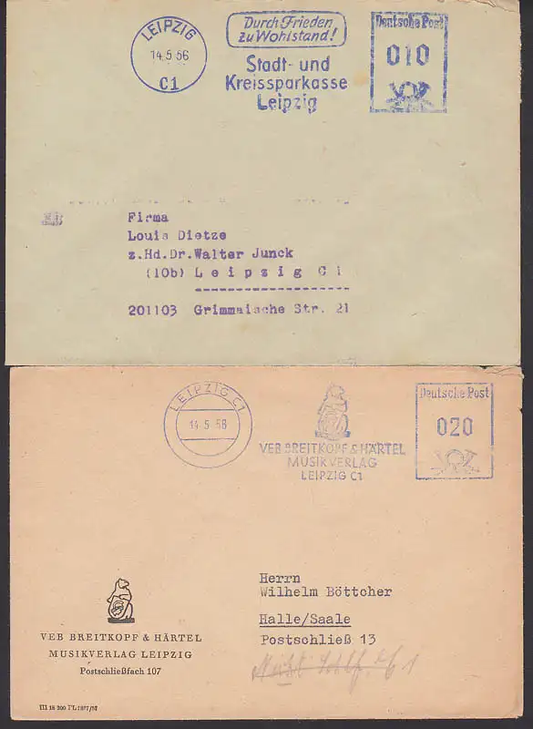 Leipzig AFS in blau Durch Frieden zu Wohlstand Stadt- u. Kreissparkasse, Musikverlag Breitkopf
