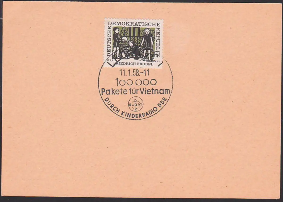 Leipzig SoSt. 100 000 Pakete für Vietnam durch Kinderradio DDR, 10 Pf. Frierich Fröbel auf Unterlage