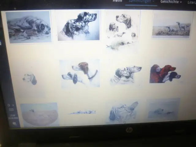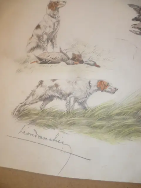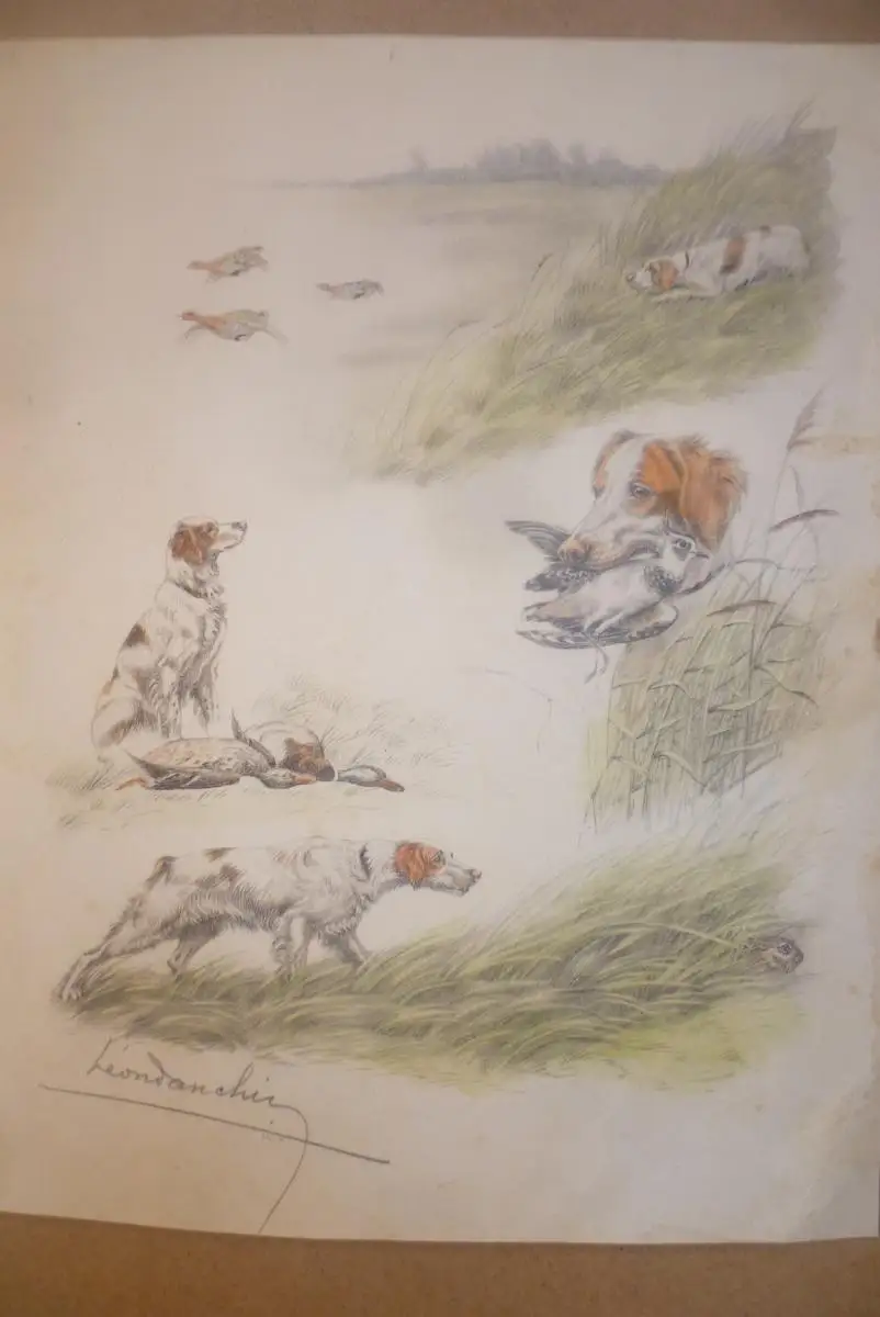 Léon Danchin 1887-Lilli-1938 "Irische Setter bei der Jagd" Mischtechnik : Kohle Farbstifte entstanden in Bergues im Französisch-Flandern um 1920-35