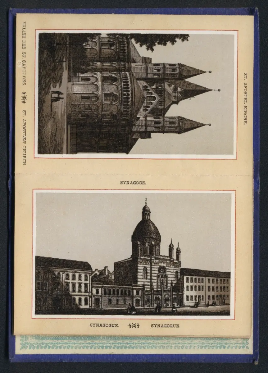 Leporello-Album 24 Lithographie-Ansichten Köln, Synagoge, Dom Innenansicht, Richmondis Haus, Flora, Zoo, Theater
