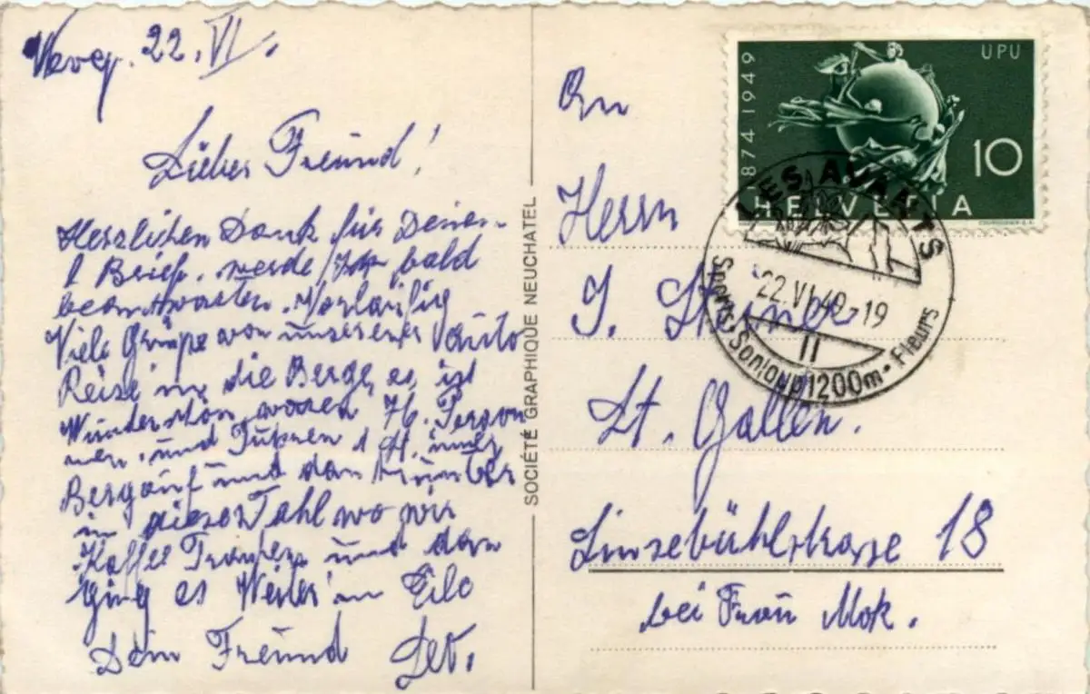 Danke. Alles Bestens. Können Sie mir allenfalls mitteilen, aus welchem Jahr die Postkarte stammt? Besten Dank.