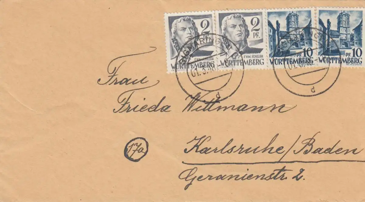 Lettre 1948 Sigmaringen à Karlsruhe.