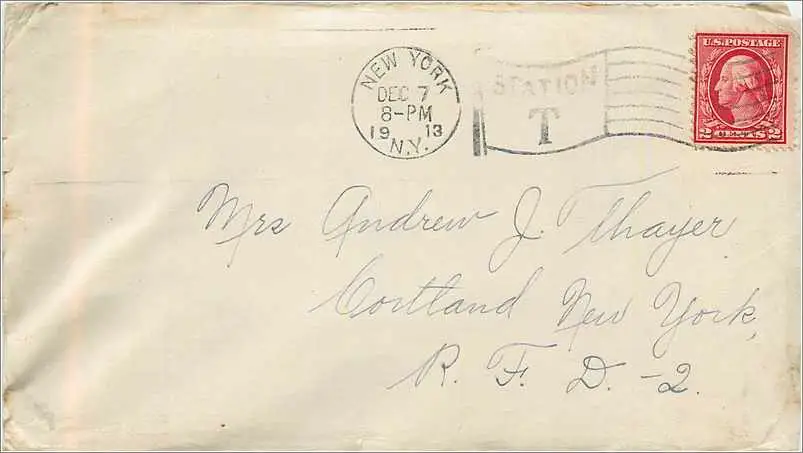 Lettre Cover Etats-Unis 2c New York 1913 for Cortland