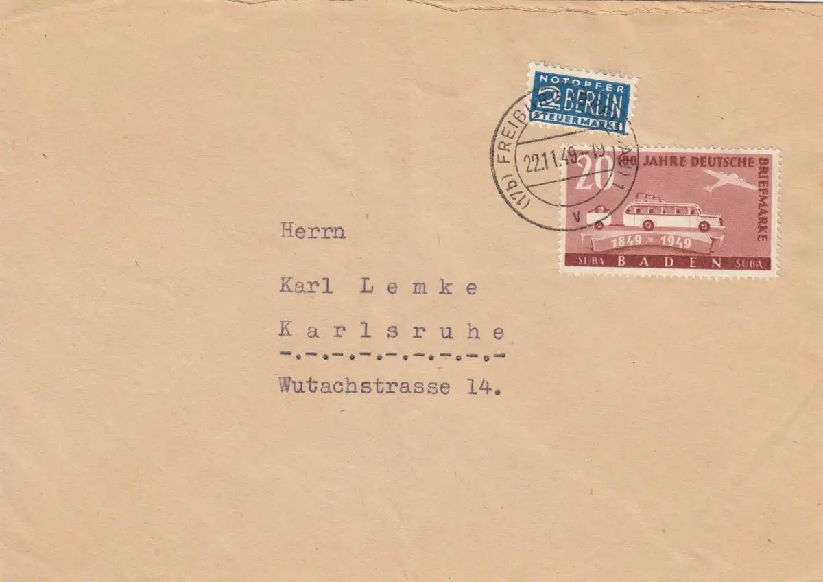 Lettre de Fribourg 22.11.1949 à Karlsruhe
