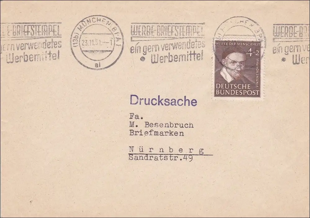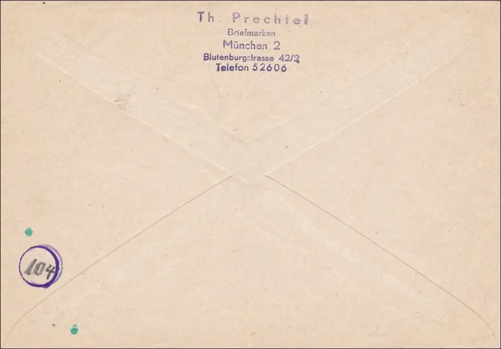 Lettre de Munich à Nuremberg 1951 - lettre d'impression