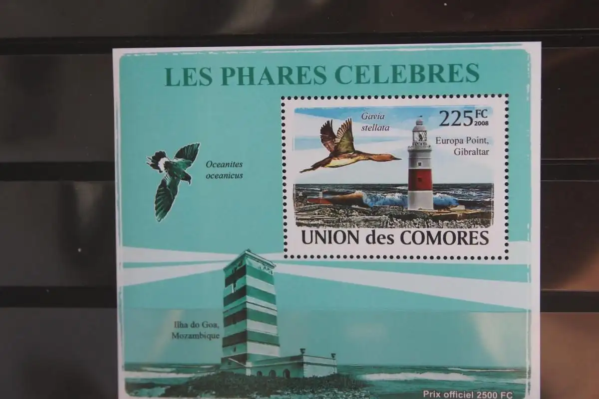 Leuchtturm Europa Point; Gibraltar, Blockausgabe der Comoren, gezähnt, ungebraucht