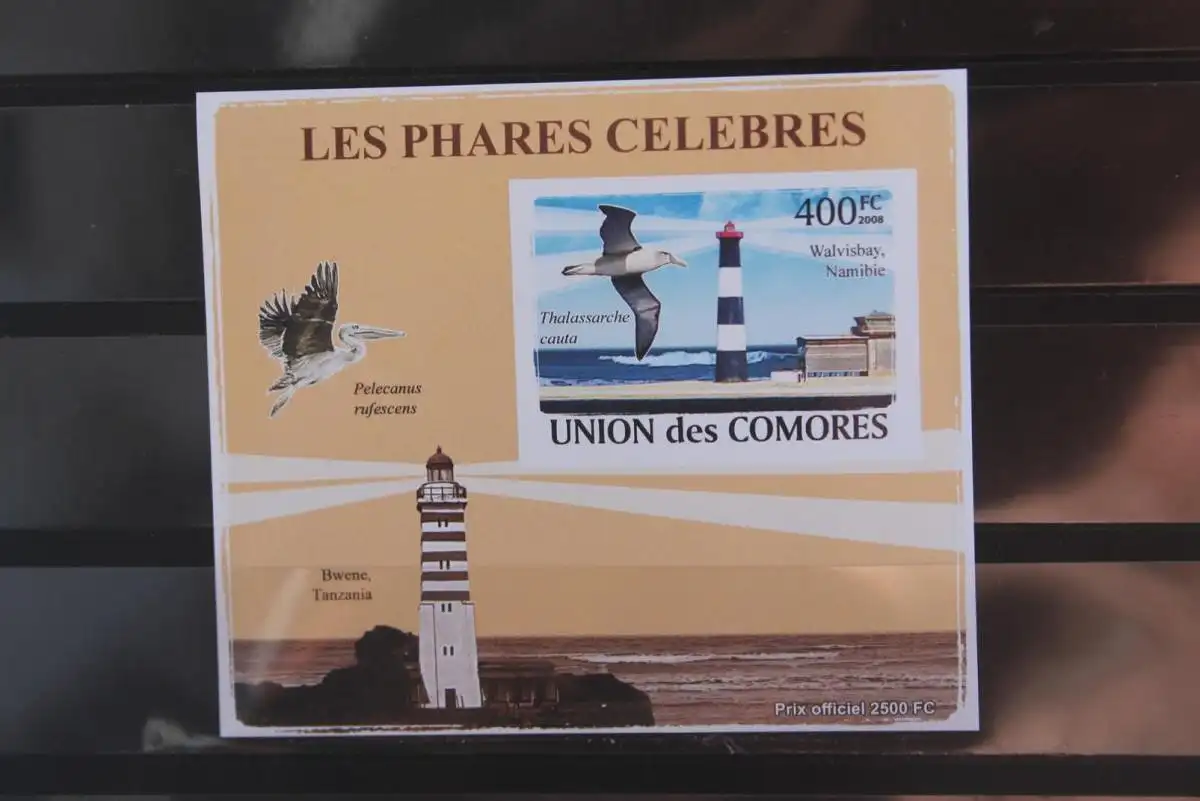 Leuchtturm Walvisbay, Namibia; Blockausgabe der Comoren, ungezähnt, ungebraucht