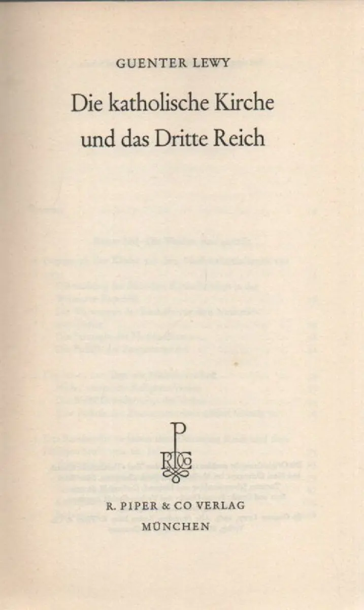 Lewy, Guenter: Die Katholische Kirche und das Dritte Reich.