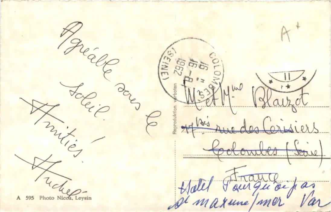Danke. Alles Bestens. Können Sie mir allenfalls mitteilen, aus welchem Jahr die Postkarte stammt? Besten Dank.