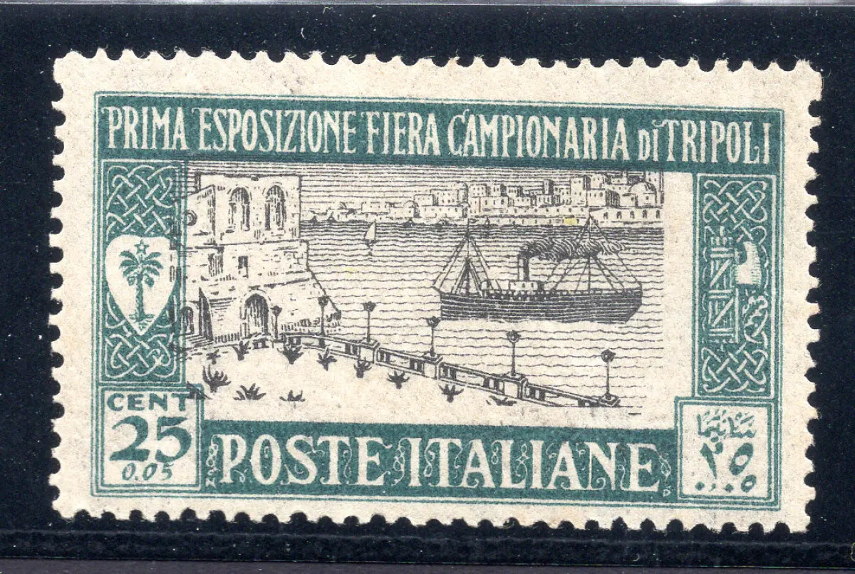 MNH - Vollgummi - - Libyen - I. Fiera Cent. 25 Nr. 67 Druck der Mitte stark nach links verschoben - Unveröffentlicht Cod.1051/182
