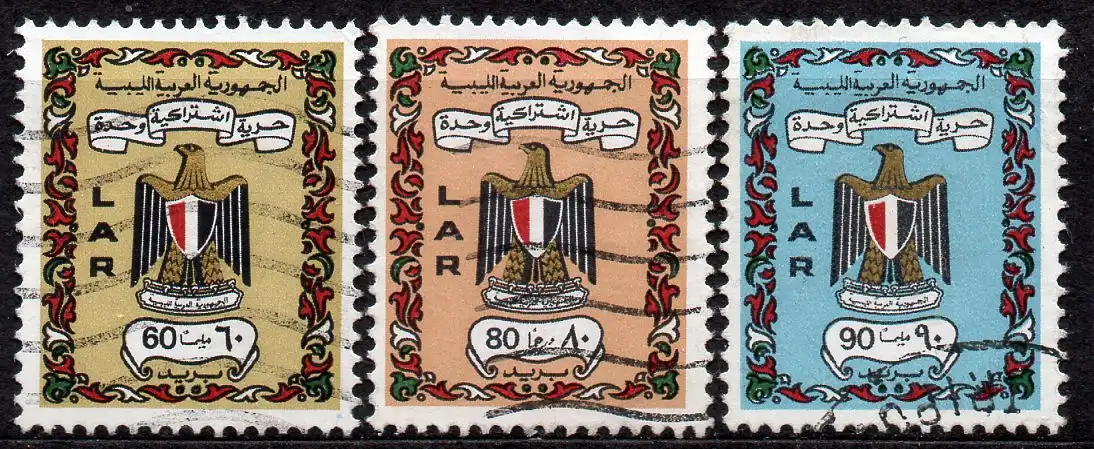 Libyen, Mi-Nr. 368, 371 + 372 gest., Staatswappen