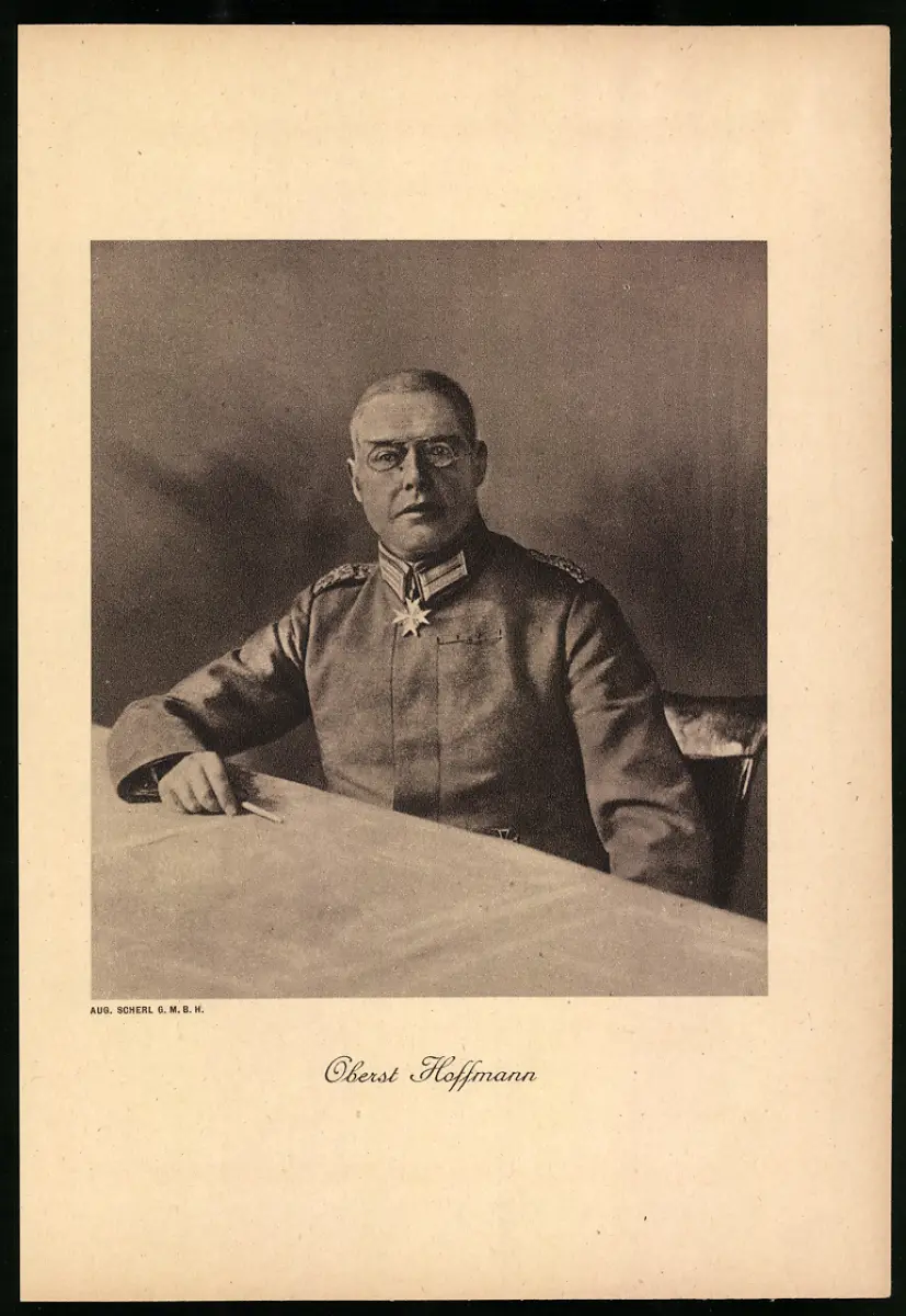 Lichtdruck Aug. Scherl, Portrait Oberst Hoffmann in Uniform mit Orden Pour le Merite, 27 x 18.5cm