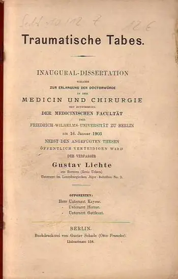 Lichte, Gustav: Traumatische Tabes. Dissertation an der Friedrich-Wilhelms-Universität zu Berlin, 1903.