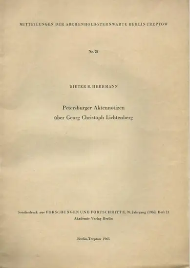 Lichtenberg, Georg Christoph. - Herrmann, Dieter B: Petersburger Aktennotizen über Georg Christoph Lichtenberg. Mit zwei unbekannten Lichtenberg-Briefen.