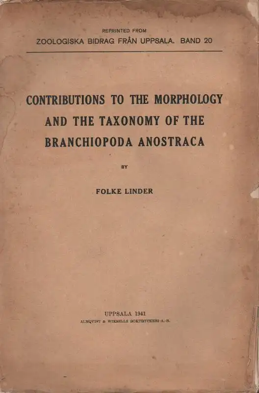 Linder, Folke: Contributions to the morphology and the taxonomy of the Branchiopoda Anostraca. (Dissertation). (Aus: Zoologiska bidrag från Uppsala. Bd 20).