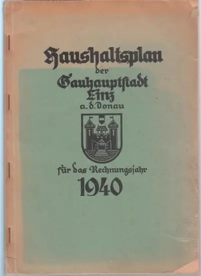 Linz an der Donau.- Ratsherren der Stadt - Leo Sturma (Oberbürgermeister - Vorw.): Haushaltsplan der Stadt Linz a.d. Donau für das Rechnungsjahr 1940.