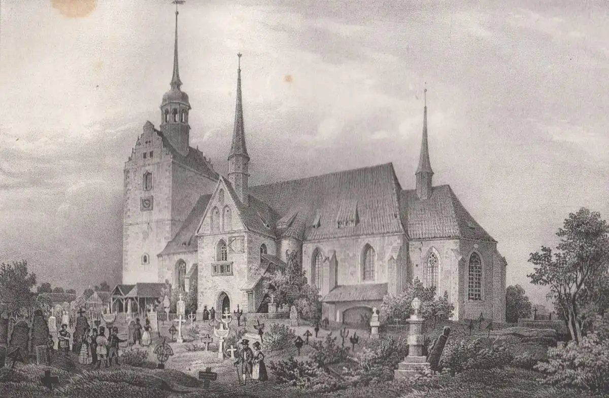 Bemerkungen: Zustand: Lithografie altersbedingt leicht gebräunt und leicht fleckig // Kreidelithografie aus dem Buch Saxonia, mittig betitelt. Motivmaß 14,0 x 20,5 cm. Das Werk "Saxonia: Museum für sächsische Vaterlandskunde" ist ein bedeutendes Sammelwerk des 19. Jahrhunderts, das sich der Dokumentation und Darstellung der sächsischen Kultur, Geschichte, Natur und Landschaft widmet. Es wurde mit dem Ziel veröffentlicht, ein umfassendes "Museum auf Papier" zu schaffen, das das kulturelle und wissenschaftliche Erbe Sachsens zugänglich macht. Das Buch vereint topografische, geschichtliche, archäologische und naturwissenschaftliche Inhalte und ist mit aufwendigen Kupferstichen oder Lithografien illustriert. Es richtet sich an Leser, die sich für das reiche kulturelle Erbe Sachsens interessieren und ist gleichzeitig ein Zeugnis der romantischen Begeisterung für Heimatkunde und Vaterlandsliebe.