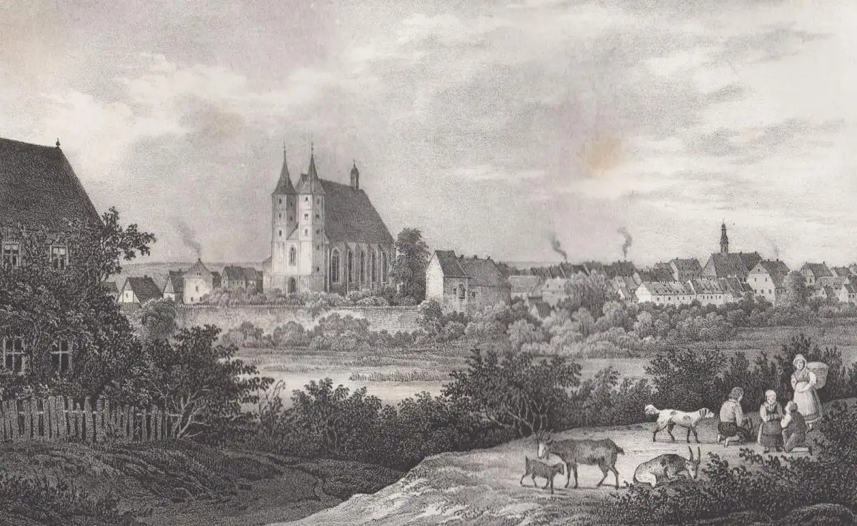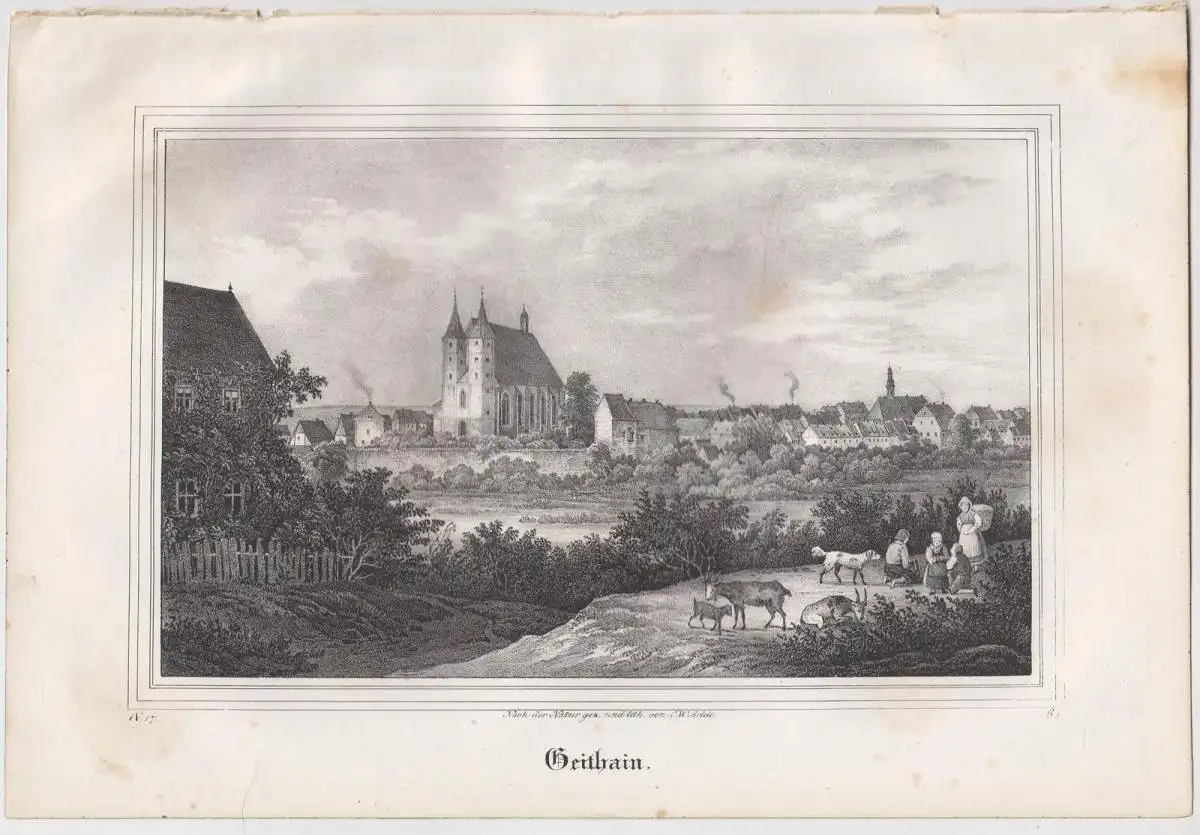 Bemerkungen: Zustand: Lithografie altersbedingt leicht gebräunt und etwas fleckig // Kreidelithografie aus dem Buch Saxonia, mittig betitelt. Bildformat 14,0 x 21,0 cm. Das Werk "Saxonia: Museum für sächsische Vaterlandskunde" ist ein bedeutendes Sammelwerk des 19. Jahrhunderts, das sich der Dokumentation und Darstellung der sächsischen Kultur, Geschichte, Natur und Landschaft widmet. Es wurde mit dem Ziel veröffentlicht, ein umfassendes "Museum auf Papier" zu schaffen, das das kulturelle und wissenschaftliche Erbe Sachsens zugänglich macht. Das Buch vereint topografische, geschichtliche, archäologische und naturwissenschaftliche Inhalte und ist mit aufwendigen Kupferstichen oder Lithografien illustriert. Es richtet sich an Leser, die sich für das reiche kulturelle Erbe Sachsens interessieren und ist gleichzeitig ein Zeugnis der romantischen Begeisterung für Heimatkunde und Vaterlandsliebe.