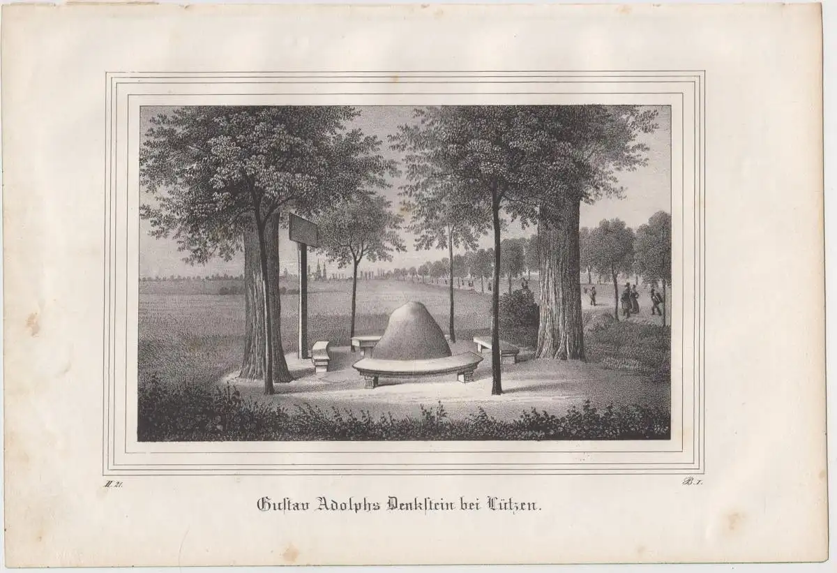 Bemerkungen: Zustand: Lithografie altersbedingt leicht gebräunt und leicht fleckig // Kreidelithografie aus dem Buch Saxonia, mittig betitelt. Bildformat 13,5 x 20,0 cm. Das Werk "Saxonia: Museum für sächsische Vaterlandskunde" ist ein bedeutendes Sammelwerk des 19. Jahrhunderts, das sich der Dokumentation und Darstellung der sächsischen Kultur, Geschichte, Natur und Landschaft widmet. Es wurde mit dem Ziel veröffentlicht, ein umfassendes "Museum auf Papier" zu schaffen, das das kulturelle und wissenschaftliche Erbe Sachsens zugänglich macht. Das Buch vereint topografische, geschichtliche, archäologische und naturwissenschaftliche Inhalte und ist mit aufwendigen Kupferstichen oder Lithografien illustriert. Es richtet sich an Leser, die sich für das reiche kulturelle Erbe Sachsens interessieren und ist gleichzeitig ein Zeugnis der romantischen Begeisterung für Heimatkunde und Vaterlandsliebe.