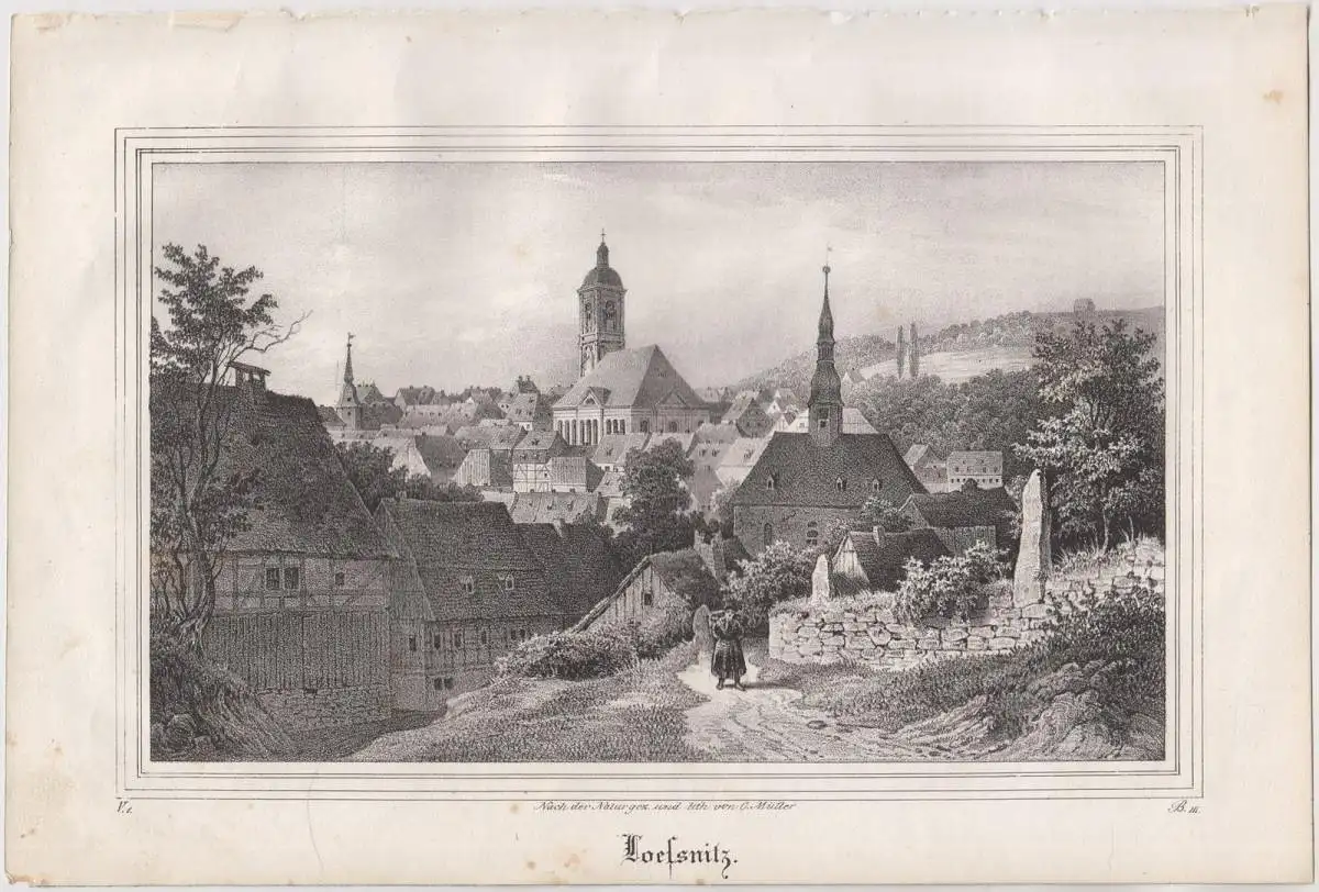 Bemerkungen: Zustand: Lithografie altersbedingt leicht gebräunt und leicht fleckig // Kreidelithografie aus dem Buch Saxonia, mittig betitelt. Motivmaß 14,5 x 23,0 cm. Das Werk "Saxonia: Museum für sächsische Vaterlandskunde" ist ein bedeutendes Sammelwerk des 19. Jahrhunderts, das sich der Dokumentation und Darstellung der sächsischen Kultur, Geschichte, Natur und Landschaft widmet. Es wurde mit dem Ziel veröffentlicht, ein umfassendes "Museum auf Papier" zu schaffen, das das kulturelle und wissenschaftliche Erbe Sachsens zugänglich macht. Das Buch vereint topografische, geschichtliche, archäologische und naturwissenschaftliche Inhalte und ist mit aufwendigen Kupferstichen oder Lithografien illustriert. Es richtet sich an Leser, die sich für das reiche kulturelle Erbe Sachsens interessieren und ist gleichzeitig ein Zeugnis der romantischen Begeisterung für Heimatkunde und Vaterlandsliebe.