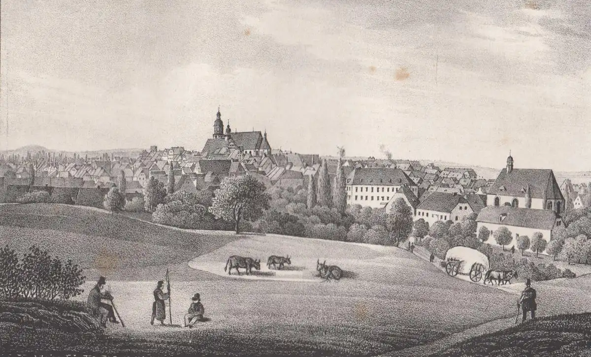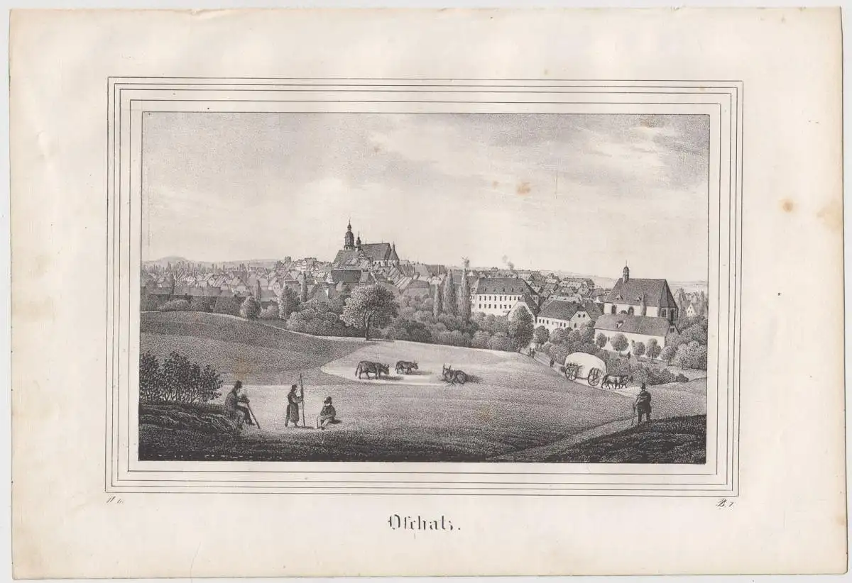 Bemerkungen: Zustand: Lithografie altersbedingt leicht gebräunt und leicht fleckig // Kreidelithografie aus dem Buch Saxonia, mittig betitelt. Bildformat 14,0 x 21,0 cm. Das Werk "Saxonia: Museum für sächsische Vaterlandskunde" ist ein bedeutendes Sammelwerk des 19. Jahrhunderts, das sich der Dokumentation und Darstellung der sächsischen Kultur, Geschichte, Natur und Landschaft widmet. Es wurde mit dem Ziel veröffentlicht, ein umfassendes "Museum auf Papier" zu schaffen, das das kulturelle und wissenschaftliche Erbe Sachsens zugänglich macht. Das Buch vereint topografische, geschichtliche, archäologische und naturwissenschaftliche Inhalte und ist mit aufwendigen Kupferstichen oder Lithografien illustriert. Es richtet sich an Leser, die sich für das reiche kulturelle Erbe Sachsens interessieren und ist gleichzeitig ein Zeugnis der romantischen Begeisterung für Heimatkunde und Vaterlandsliebe.