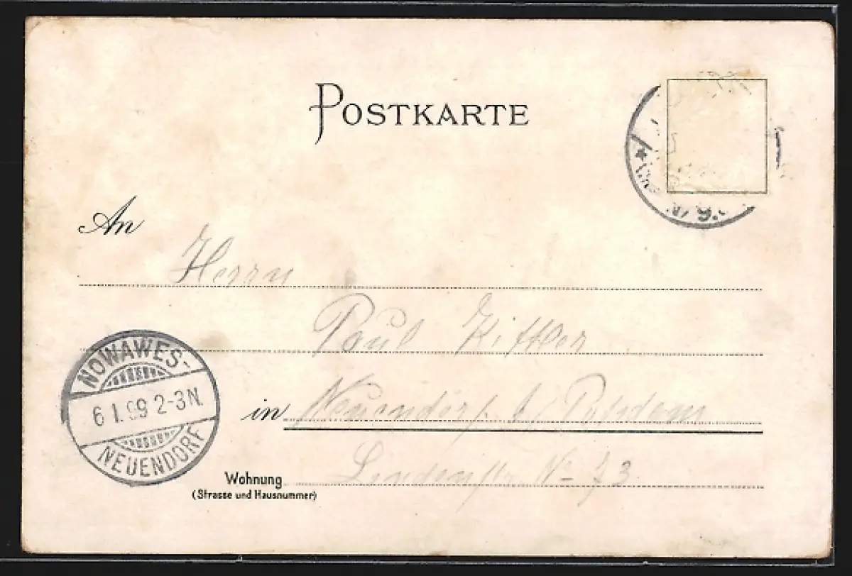 gelaufen 1899, Briefmarke entfernt, Eckknick oben rechts, guter Zustand
